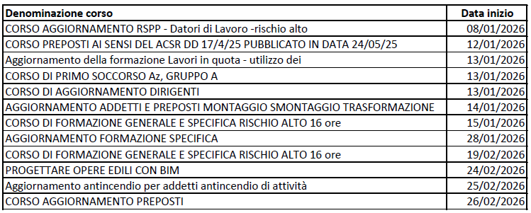 Vi facciamo presente che li requisito minimo obbligatorio, per poter frequentare i corsi di formazione generale e specifica o altri corsi di formazione relativi al tema di salute e sicurezza, non può essere inferiore ad un livello A2/B1.