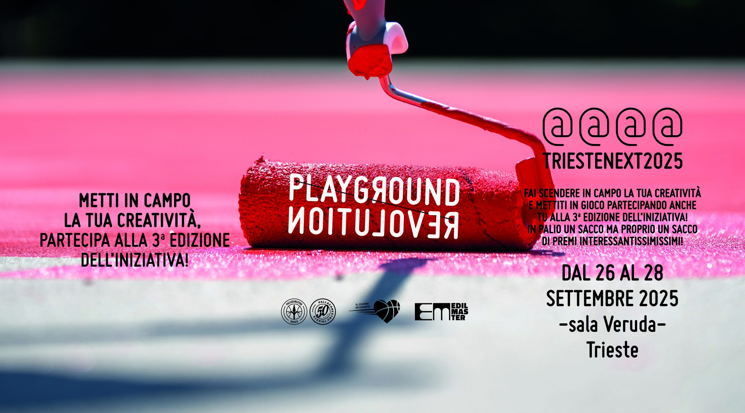 Dal 26 al 28 settembre 2025, grazie al sostegno di Edilmaster e del Comune di Trieste, l’iniziativa PLAYGROUND REVOLUTION – Spazi urbani in transi(a)zione, promossa da Pallacanestro Trieste attraverso l’associazione Il Cuore in Campo – Pallacanestro Trieste ODV ed Edilmaster – la scuola dell’edilizia e dell’arte di Trieste, sarà protagonista alla più importante manifestazione regionale dedicata all’innovazione e ricerca scientifica: Trieste Next (www.triestenext.it).
